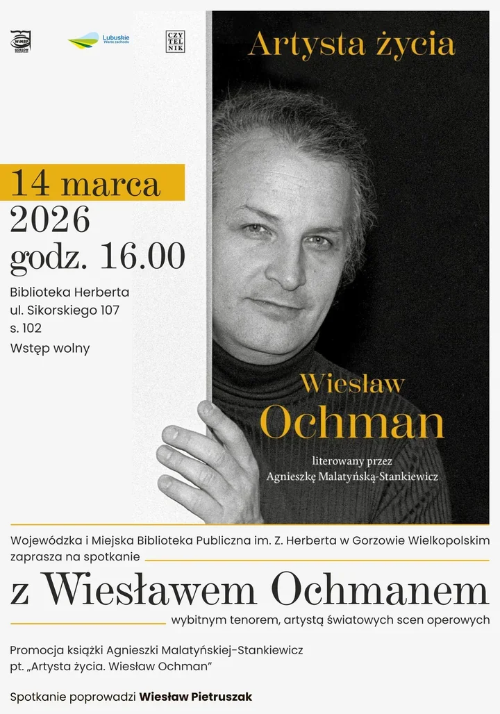 - 14 marca 2026 r., godz. 16.00 - Spotkanie z Wiesławem Ochmanem - Biblioteka Herberta, ul. Sikorskiego 107, s. 102