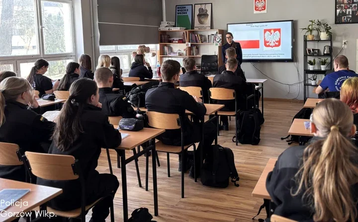 W sali lekcyjnej policjantka z Komendy Miejskiej Policji omówiła flagę, hymn i inne symbole narodowe - wszystko w kontekście zasad i etykiety. Spotkanie miało formę edukacyjną i było skierowane do uczniów oddziałów mundurowych. Zajęcia położyły nacisk na praktyczne zasady wykonywania hymnu oraz znaczenie symboli dla tożsamości.