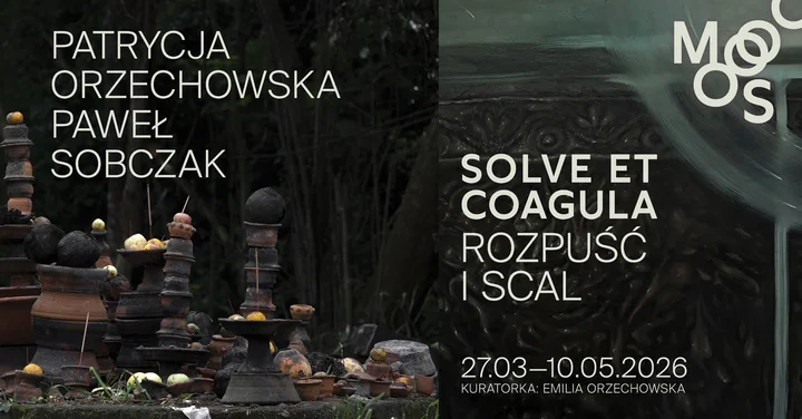 Solve et coagula — „rozpuść i scal” — to punkt wyjścia dla prac, które badają współczesne rytuały: te codzienne, intuicyjne, i te z przeszłości mające korzenie w ziemi i wspólnocie. Paweł Sobczak pracuje z malarstwem, instalacją i filmem, traktując pigment i warstwy farby jak żywą substancję, w której kreacja sąsiaduje z destrukcją. Patrycja Orzechowska wykorzystuje fotografię, ready-made i ceramikę — jej glina przypomina o czasie zakorzenionym w ziemi, a obrazy fotograficzne zatrzymują ulotne momenty.
